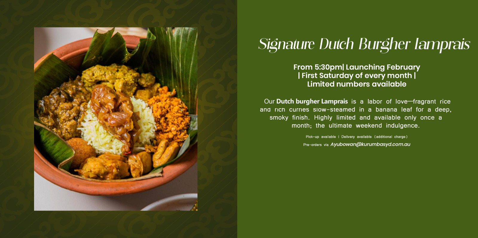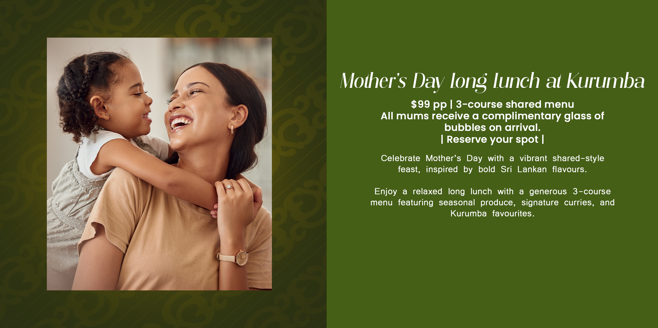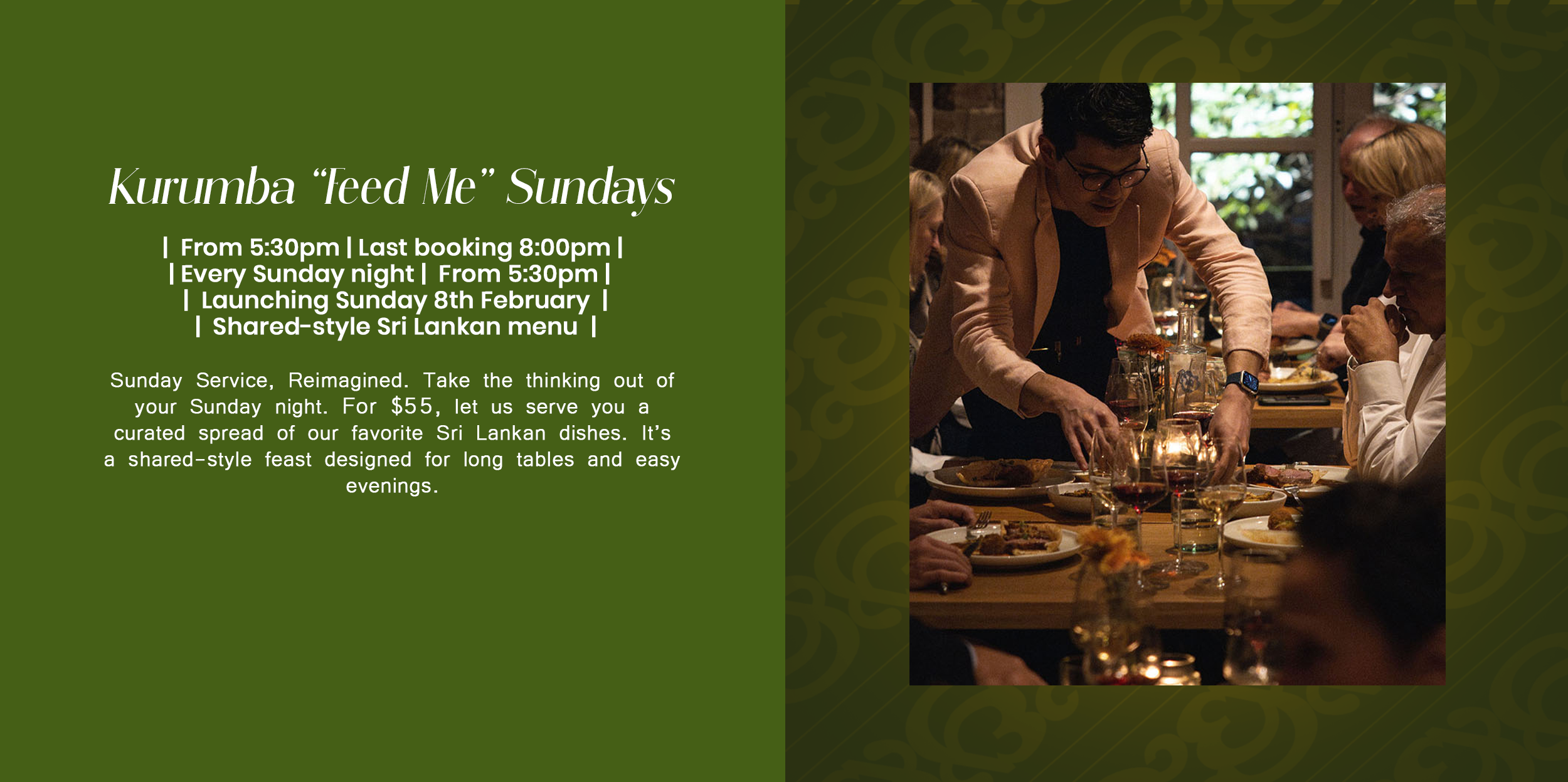 Join us for a shared style Sri Lankan inspired feast at Kurumba $85